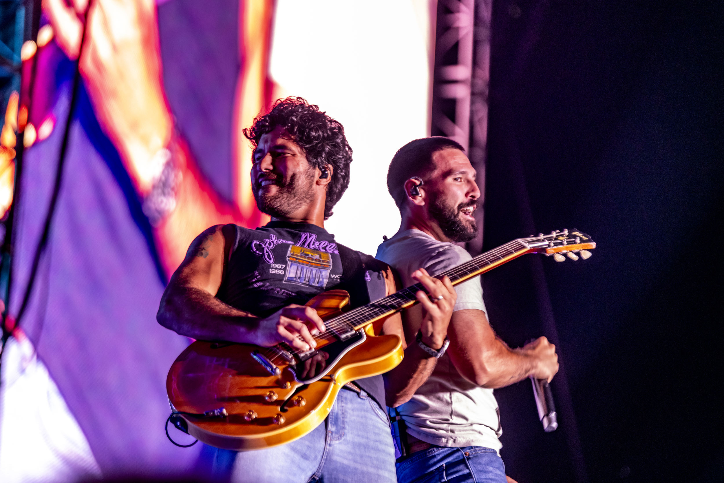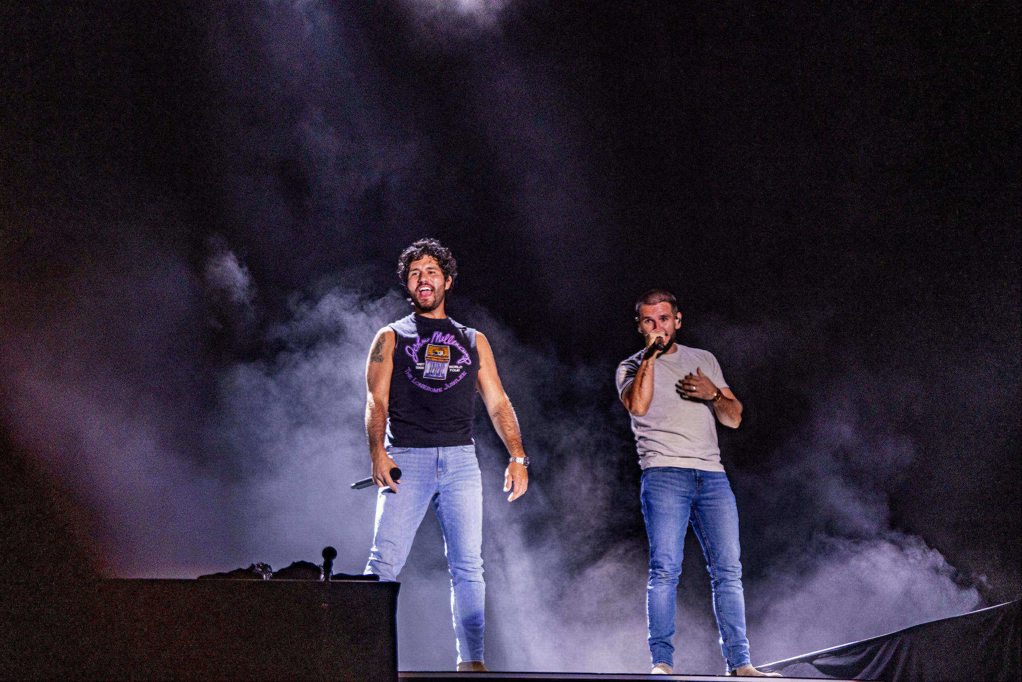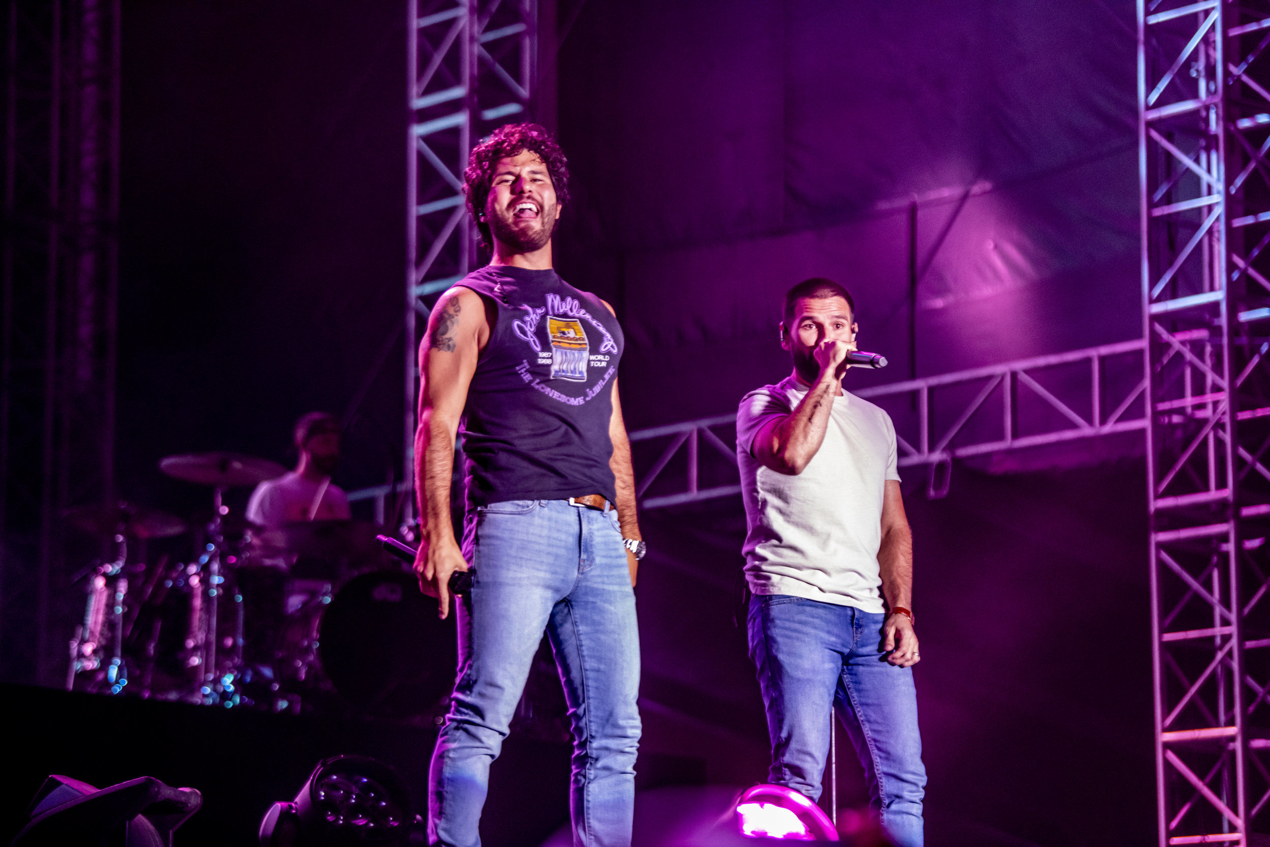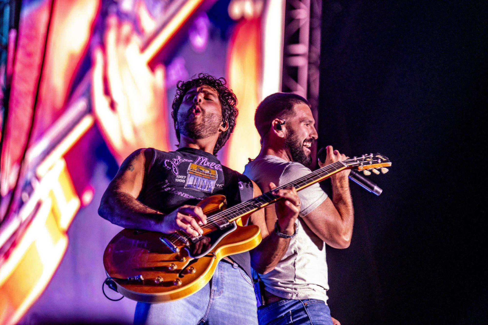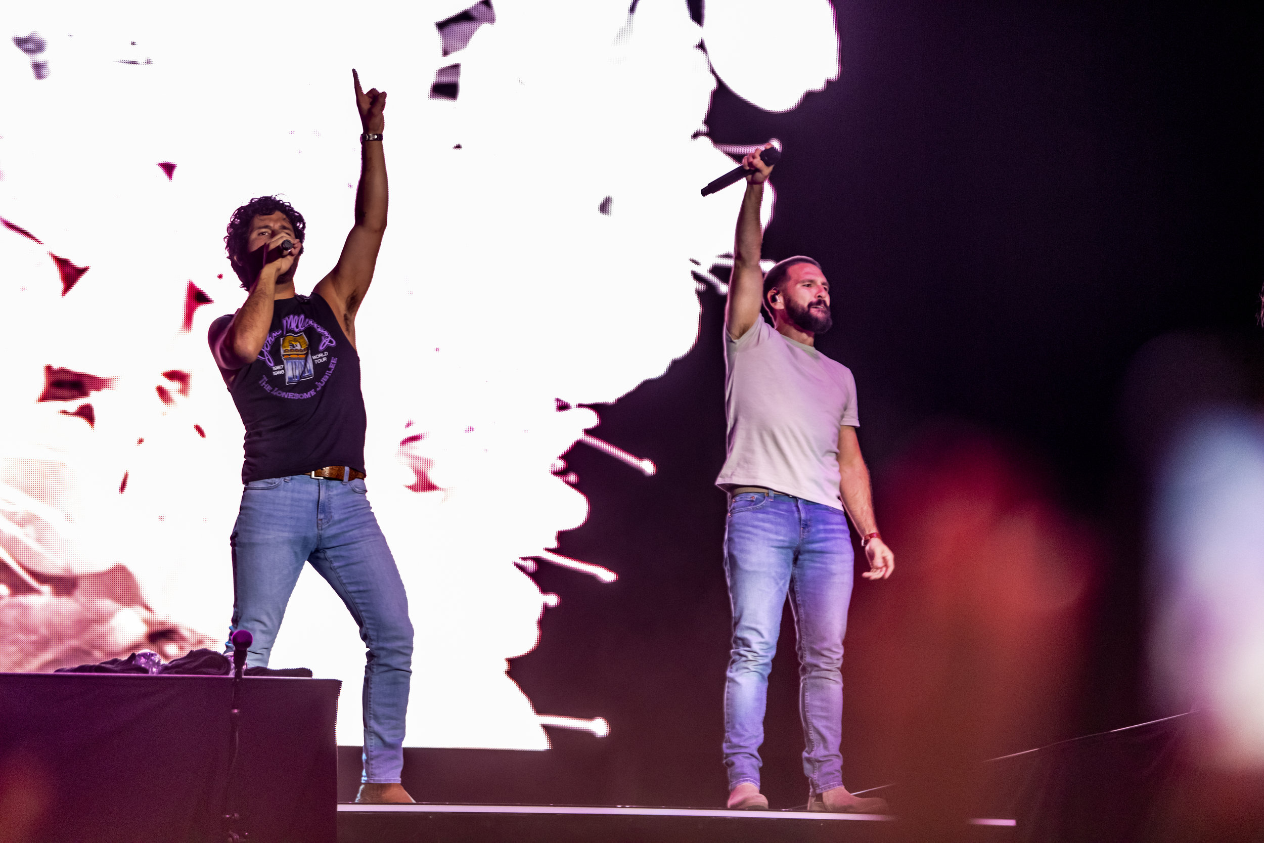 Dan + Shay infuse country music with pop’s glossy sheen, crafting songs that pulse with raw emotion and universal appeal through Shay Mooney’s soaring vocals and Dan Smyers’ polished production. Their high-energy performances radiate warmth and authenticity, turning arenas into intimate sing-alongs that leave crowds buzzing. With four Grammy wins, including for ‘Tequila’ and ‘10,000 Hours,’ plus ACM Entertainer of the Year honors, they’ve amassed over 10 billion streams and headlined massive tours, from the Grand Ole Opry to global festivals, solidifying their role as heartfelt innovators in modern country.