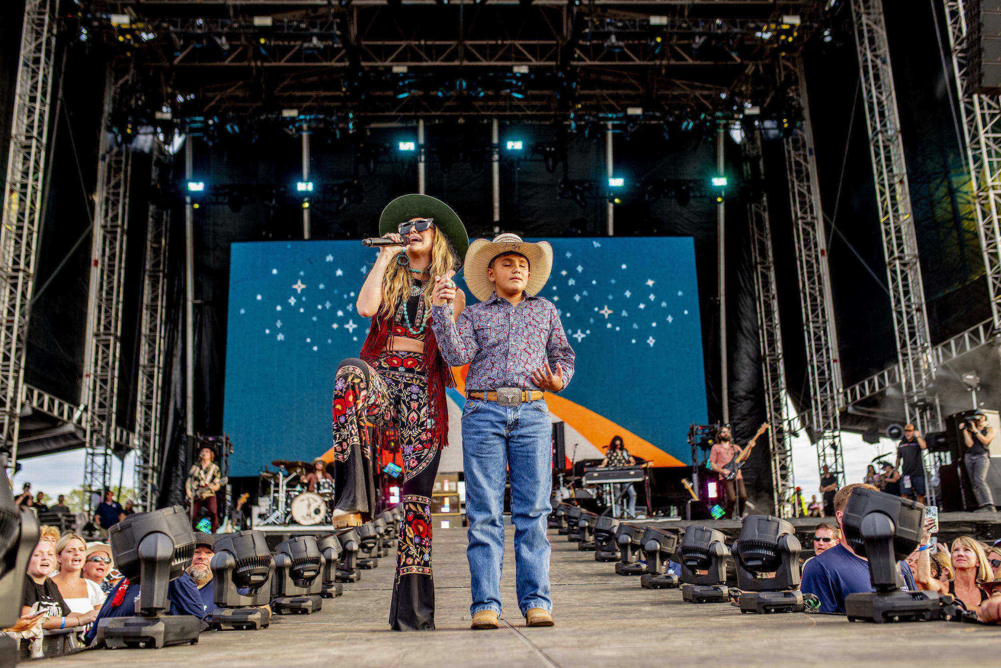 Lainey Wilson electrifies the country music scene with her neotraditional sound, blending honky-tonk grit and heartfelt storytelling delivered through her signature raspy vocals. Her unique style—think bell-bottom jeans, big blonde curls, and unapologetic Southern charm—radiates an infectious energy that turns every performance into a lively celebration of roots and resilience. Standout achievements include her 2023 ACM Entertainer of the Year win, a Grammy for Best Country Album in 2024 for ‘Bell Bottom Country,’ and chart-topping hits like ‘Heart Like a Truck.’ She’s commanded stages at the Grand Ole Opry, headlined sold-out tours, and collaborated with icons like Dolly Parton, solidifying her as a powerhouse voice in modern country.