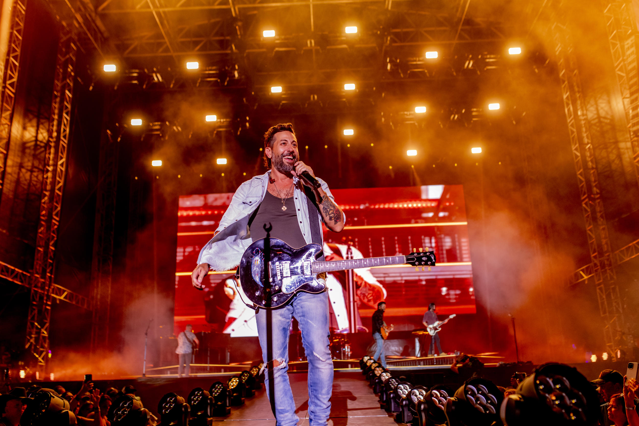 Old Dominion electrifies the country music scene with their signature fusion of heartfelt storytelling, pop-infused hooks, and rock-tinged energy that turns every performance into a high-octane celebration. Formed by Matthew Ramsey, Trevor Rosen, Brad Tursi, Jack Sonni, and Justin Young, the band crafts songs that resonate deeply while keeping feet tapping, as heard in chart-toppers like ‘Break Up with Him’ and ‘Make It Feel Good.’ They’ve racked up multiple ACM and CMA Awards, a Grammy nomination, and sold-out tours headlining arenas and rocking festivals from Stagecoach to the Grand Ole Opry, proving their knack for connecting with fans through genuine charisma and relentless stage presence.