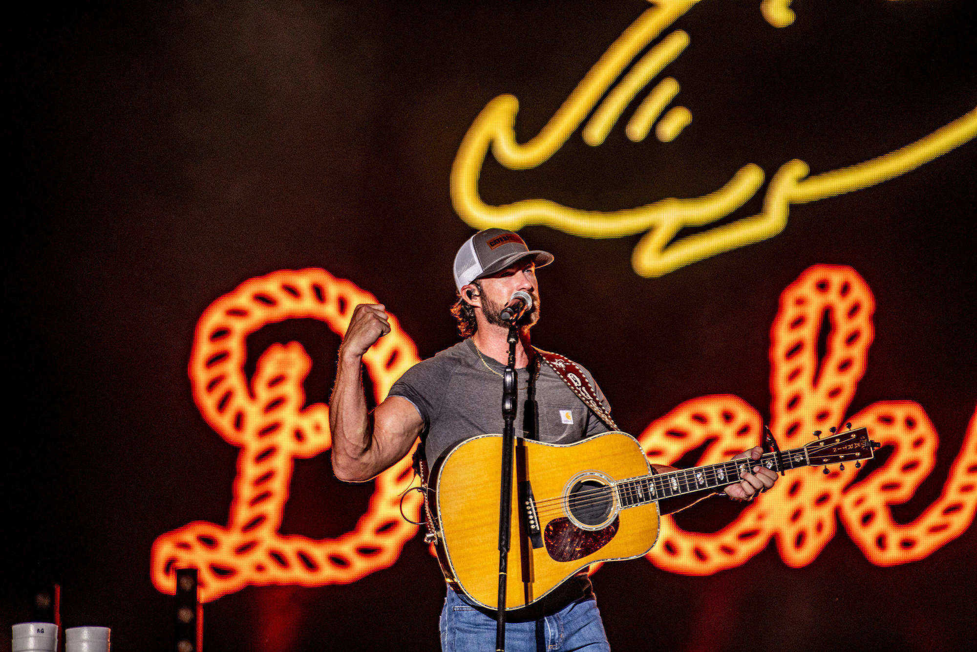 Riley Green channels the soul of Southern country with his rugged, heartfelt sound that fuses traditional twang and rock-infused grit, drawing fans into tales of small-town life and universal emotions. Emerging from Jacksonville, Alabama, he skyrockets to fame with platinum-certified hits like ‘There Was This Girl’ and ‘I Wish Grandpas Never Died,’ earning ACM New Male Artist of the Year and a fervent following. His electrifying live performances, brimming with raw charisma and crowd-roaring anthems, light up stages from intimate honky-tonks to massive festivals, including openers for Luke Bryan and headlining his own sold-out tours across the U.S.